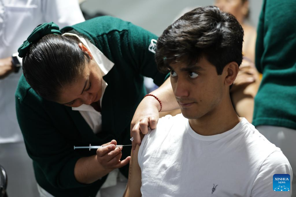 A health worker administers a vaccine to a citizen at a vaccination center in Mexico City, capital of Mexico, Nov. 12, 2025. Mexico City has set up a vaccination center offering influenza, COVID-19, pneumococcal and measles vaccines to the public as part of efforts to improve community immunization coverage during the winter season. (Photo by Francisco Canedo/Xinhua)