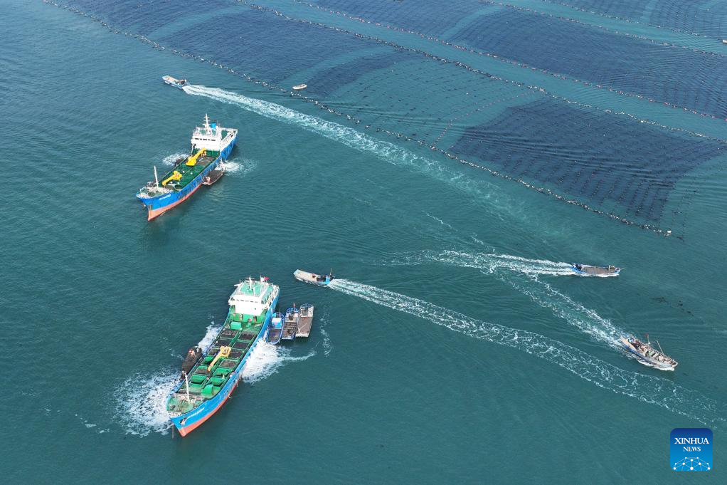 The output of marine aquatic products in Shandong reached 8.25 million tonnes with an added value exceeding 100 billion yuan (about 14.09 billion U.S. dollars) in 2024, topping among all regions at the provincial level in the country. (Photo by Wang Fudong/Xinhua)
