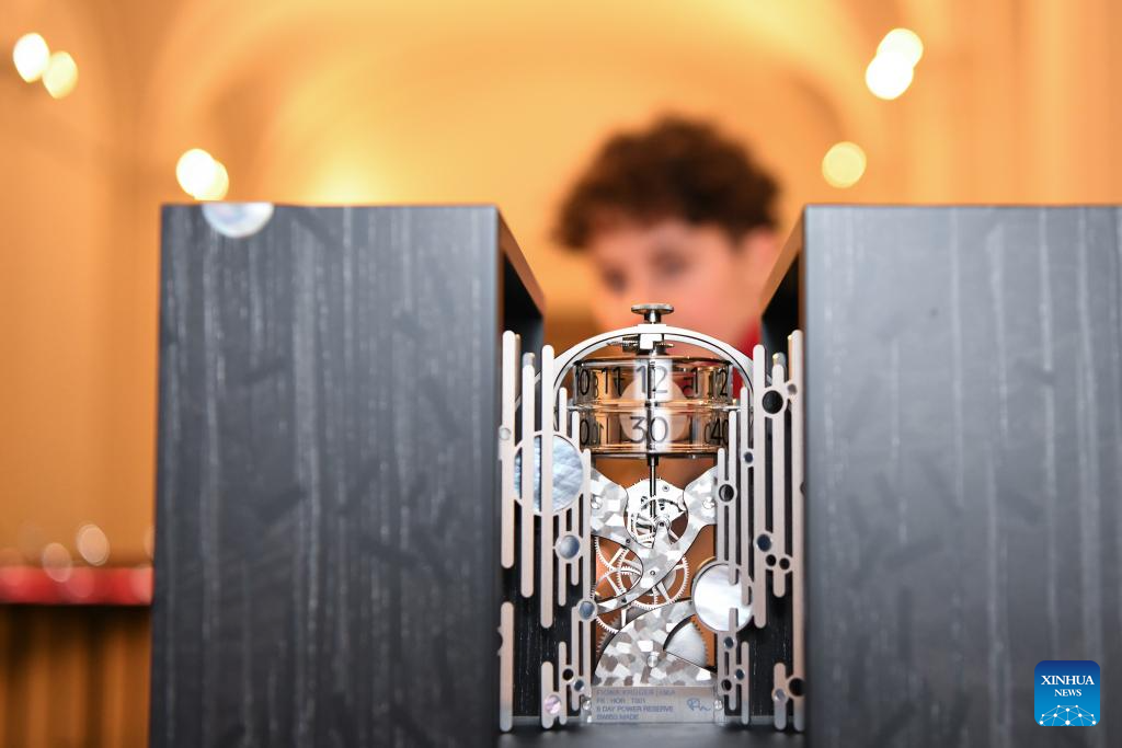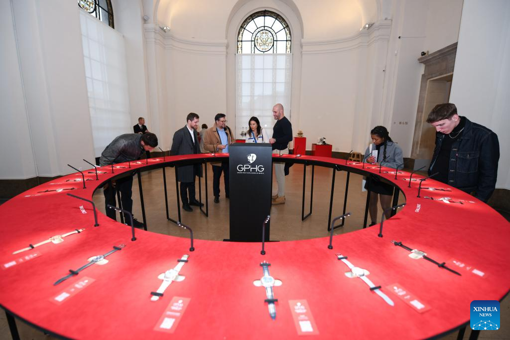 People visit the 25th Grand Prix d'Horlogerie de Geneve (GPHG) exhibition in Geneva, Switzerland, Nov. 13, 2025. Chinese independent watch brand Fam al Hut on Thursday won the Audacity Prize at the 25th Grand Prix d'Horlogerie de Geneve (GPHG), widely regarded as the "Oscars of the watch industry." This is the second time a Chinese brand has claimed a GPHG award. In 2021, China's CIGA Design won the Challenge Watch Prize for its original model, "the Blue Planet." (Xinhua/Lian Yi)