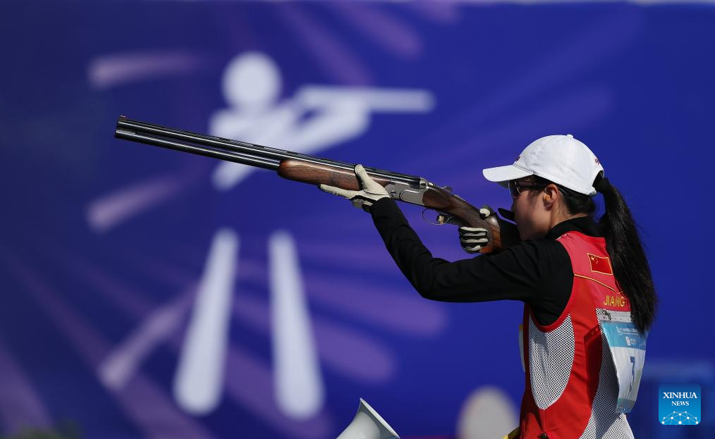 Jiang Yiting of Fujian competes during the skeet women's final of shooting at China's 15th National Games in Guangzhou, south China's Guangdong Province, Nov. 14, 2025. (Xinhua/Pan Yulong)