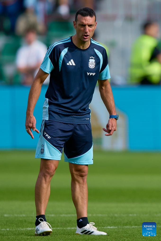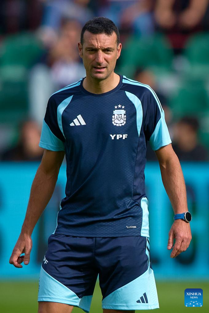 Lionel Scaloni, head coach of the Argentina national football team, attends a training session at Martinez Valero Stadium in Elche, Spain, on Nov. 13, 2025. (Str/Xinhua)
