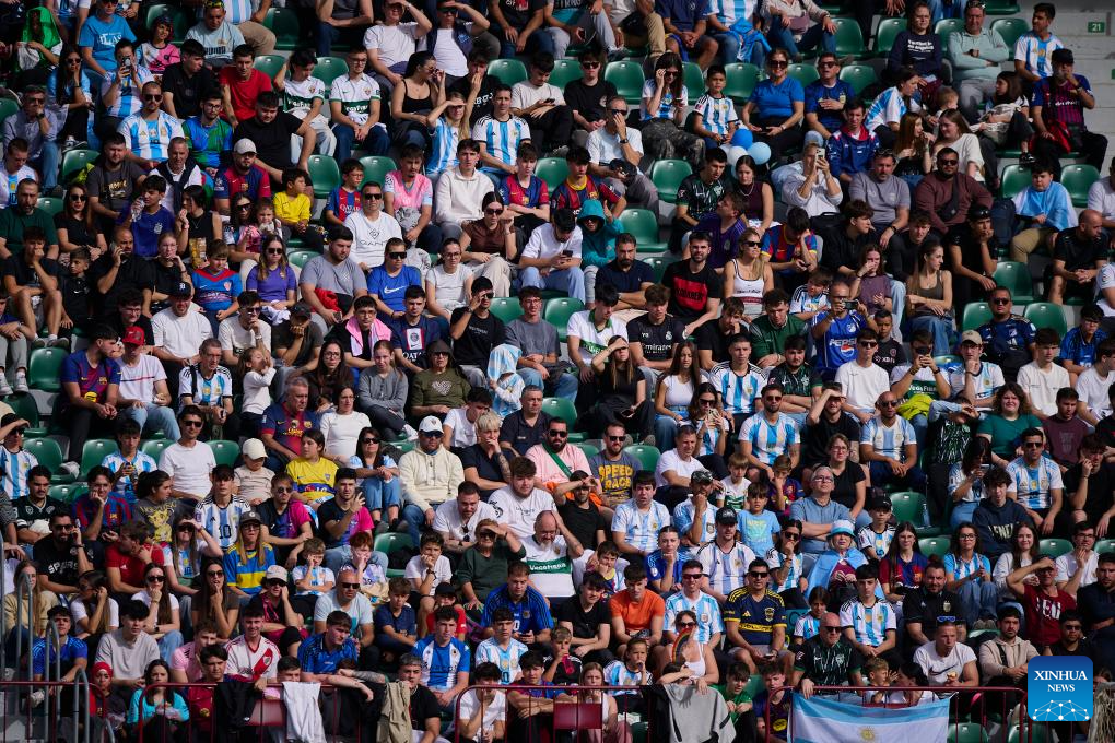 Fans watch a training sessiong of the Argentina national football team at Martinez Valero Stadium in Elche, Spain, on Nov. 13, 2025. (Str/Xinhua)