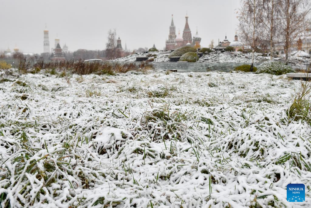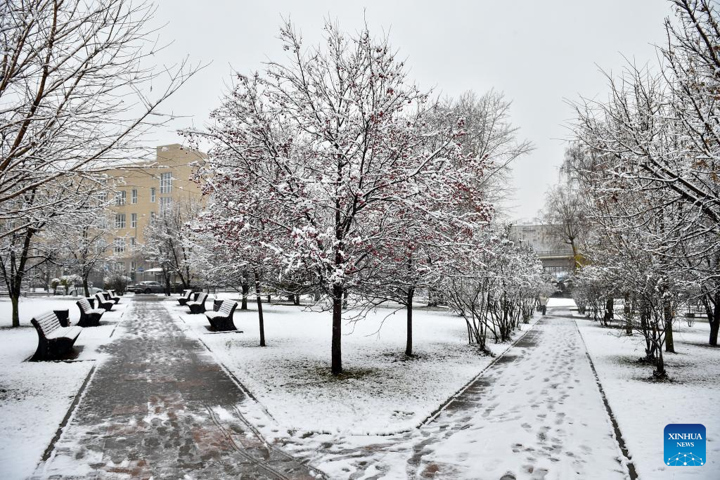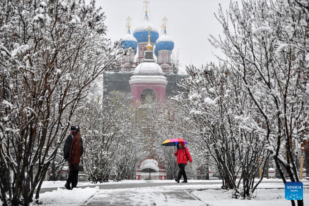 This photo taken on Nov. 15, 2025 shows the scenery of snow in Moscow, Russia. Moscow on Friday saw its first snowfall since the beginning of winter this year. (Photo by Alexander Zemlianichenko Jr/Xinhua)