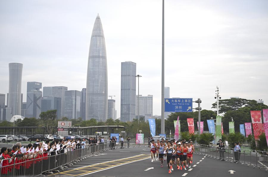 GUANGZHOU, Nov. 15 (Xinhua) -- China's National Games held its first-ever cross-boundary marathon on Saturday, with both men's and women's races run on a course spanning Shenzhen in Guangdong Province and Hong Kong.