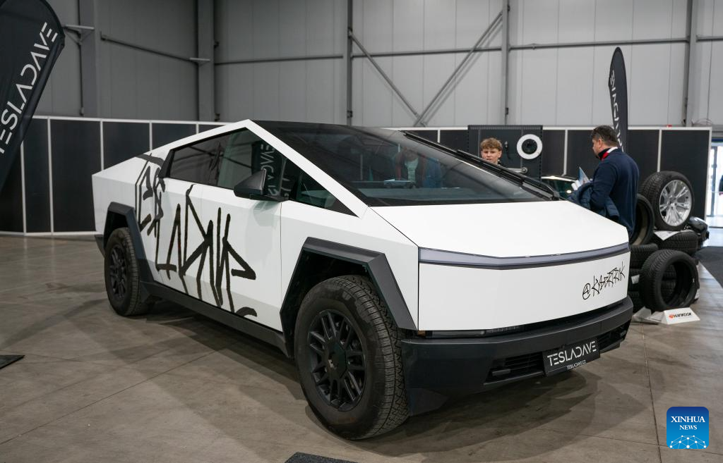 People visit the exhibition area of Tesla at the 7th e-SALON in Prague, the Czech Republic, Nov. 14, 2025.