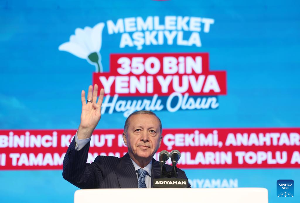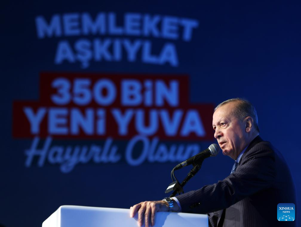 ANKARA, Nov. 15 (Xinhua) -- Turkish President Recep Tayyip Erdogan on Saturday attended a ceremony in Adiyaman province to deliver newly built post-quake homes, reaffirming the government's commitment to supporting survivors of the 2023 earthquakes.