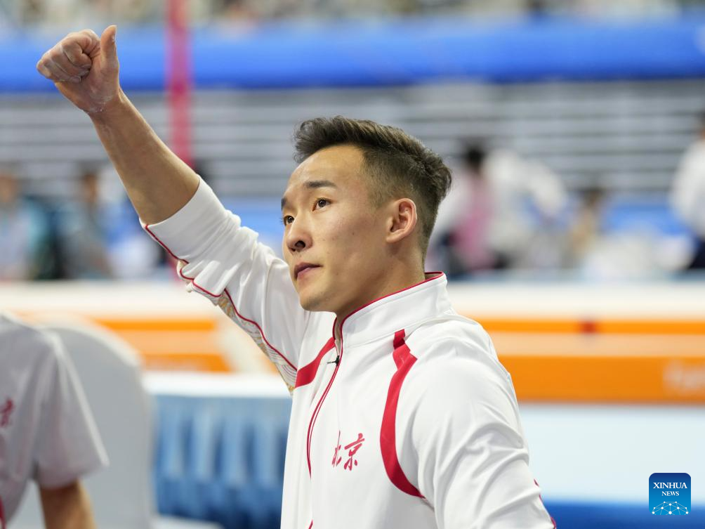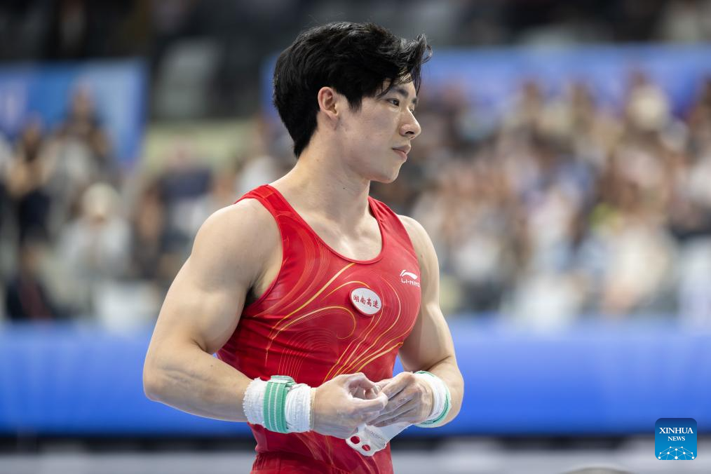 Xiao Ruoteng of Beijing is seen during the artistic gymnastics men's individual all-around final at China's 15th National Games in Zhaoqing, south China's Guangdong Province, Nov. 14, 2025. (Xinhua/Du Zixuan)
