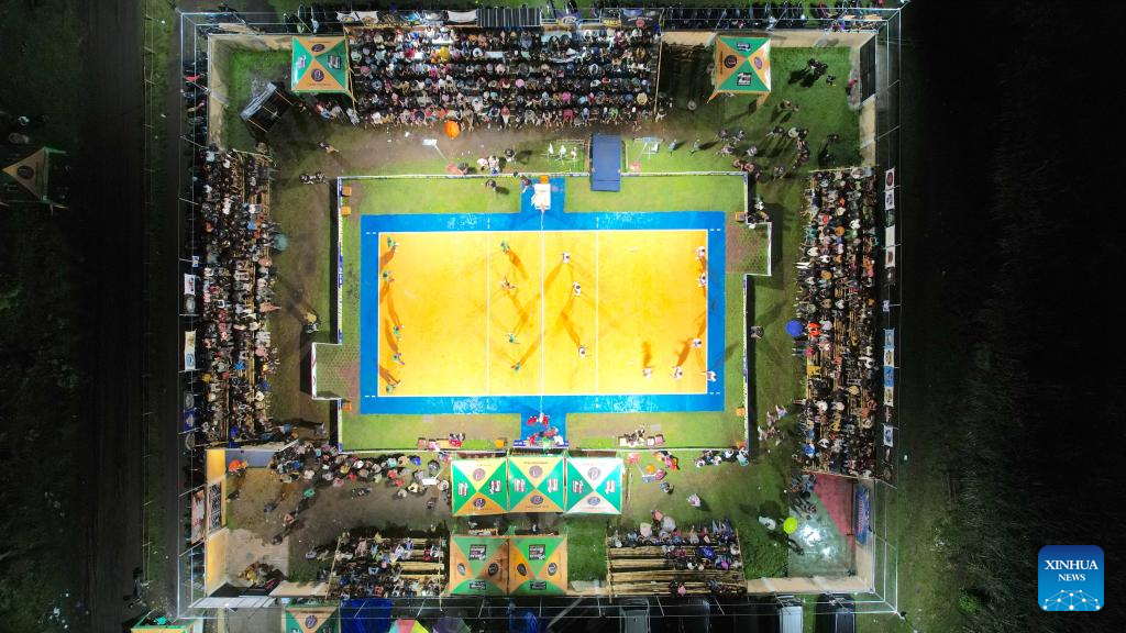 LUMAJANG, Indonesia, Nov. 15 (Xinhua) -- More than 1,000 residents swarmed into an open-air stadium surrounded by sugarcane fields in Purwosono, a village in Lumajang Regency in Indonesia's East Java Province, to watch the final of a volleyball competition on Thursday evening.