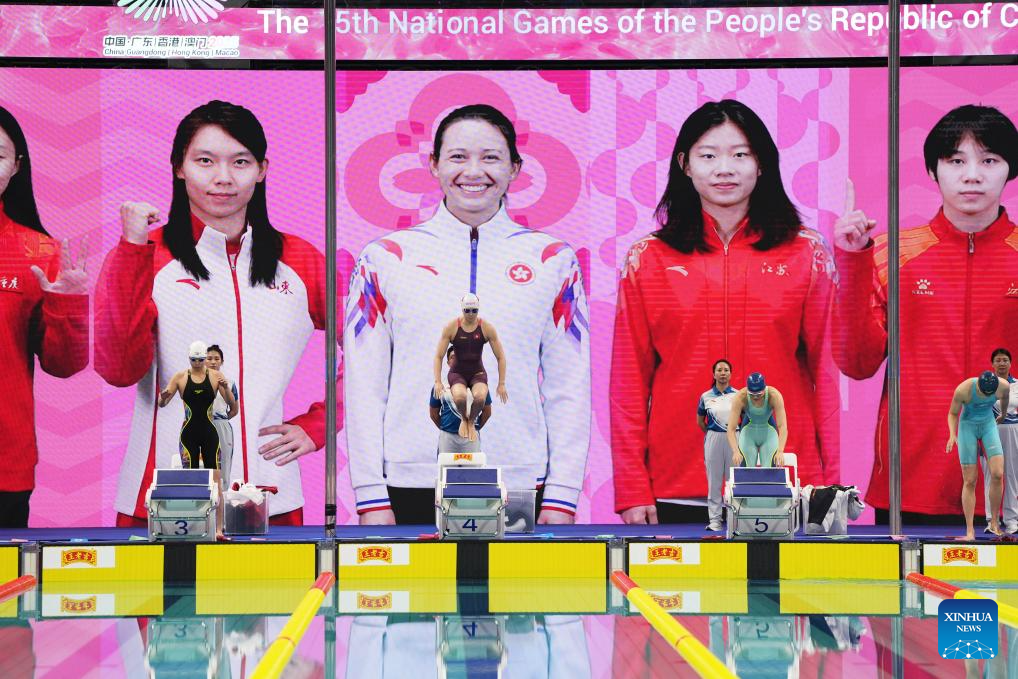 Siobhan Bernadette Haughey of Hong Kong competes during the women's 100m freestyle final of swimming at China's 15th National Games in Shenzhen, south China's Guangdong Province, Nov. 15, 2025. (Xinhua/Xia Yifang)