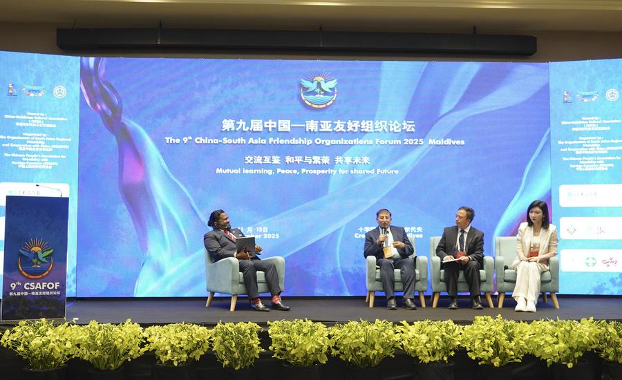 MALE, Nov. 15 (Xinhua) -- The 9th China-South Asia Friendship Organizations Forum was held in the Maldives from Thursday to Friday, which was jointly organized by the Chinese People's Association for Friendship with Foreign Countries (CPAFFC) and the Organization for South Asian Regional Friendship and Cooperation with China (OSARFCC).