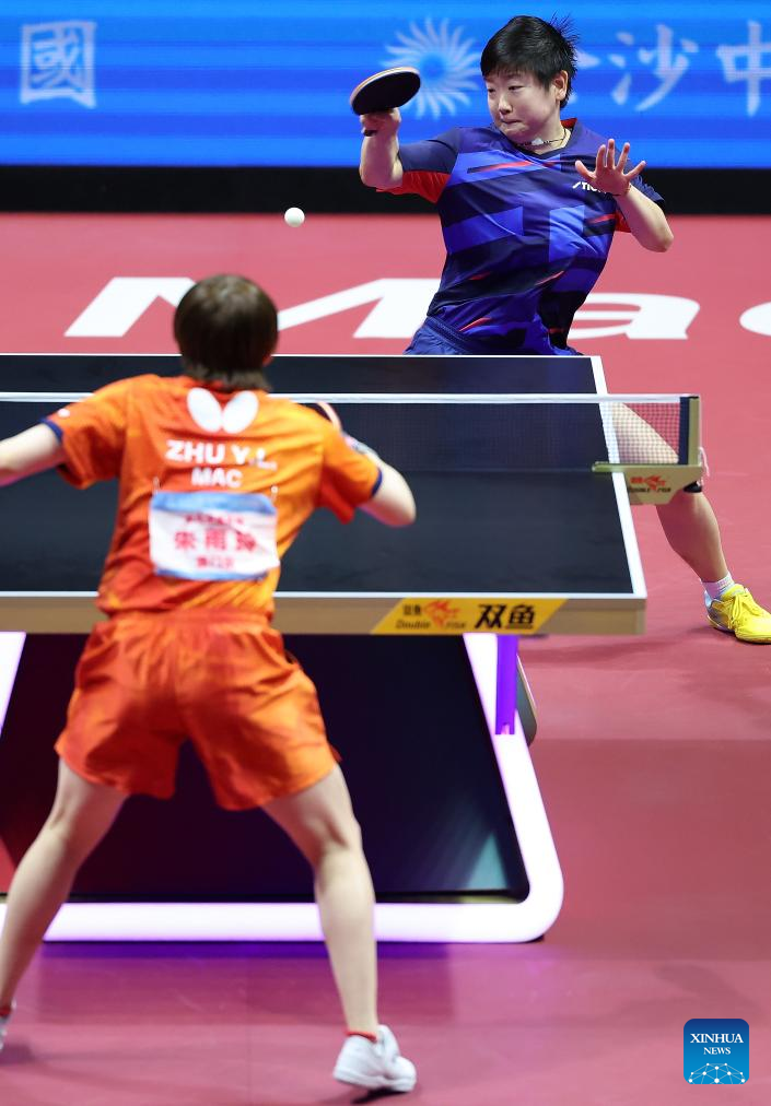MACAO, Nov. 15 (Xinhua) -- Sun Yingsha and Wang Manyu will meet in the women's singles final at China's 15th National Games after winning their semifinal matches on Saturday at Macao's Galaxy Arena.