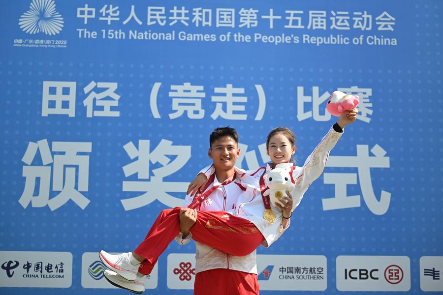 Zheng Haohao of Guangdong competes during the women's park semifinals of skateboarding at China's 15th National Games in Huizhou, south China's Guangdong Province, Nov. 10, 2025. (Xinhua/Liu Kun)Chen Yiwen of Guangdong competes during the women's 3m springboard semifinal of diving event at China's 15th National Games in Guangzhou, south China's Guangdong Province, Nov. 10, 2025. (Xinhua/Xiao Yijiu)Yu Zidi (top) of Hebei hugs Yu Yiting of Zhejiang after the women's 200m individual medley final of swimming event at China's 15th National Games in Shenzhen, south China's Guangdong Province, Nov. 11, 2025. (Xinhua/Chen Yichen)Gold medalist Qin Haiyang of Shanghai is seen during the awarding ceremony after the men's 100m breaststroke final of swimming event at China's 15th National Games in Shenzhen, south China's Guangdong Province, Nov. 11, 2025. (Xinhua/Xue Yuge)Team Shandong celebrate during the awarding ceremony for the men's eight of rowing at China's 15th National Games in Guangzhou, south China's Guangdong Province, Nov. 11, 2025. (Xinhua/Xiao Ennan)Mascots are seen during the U18 women's final match of basketball between Shandong and Jiangsu at China's 15th National Games in Zhongshan, south China's Guangdong Province, Nov. 13, 2025. (Xinhua/Ding Lei)Pan Yufei of Hubei competes during the men's lead qualification of sport climbing at China's 15th National Games in Guangzhou, south China's Guangdong Province, Nov. 12, 2025. (Xinhua/Yang Shiyao)Gold medalist Yang Jiayu (R) of Beijing celebrates with her husband and coach Wei Xinmeng during the awarding ceremony for the women's 20km race walk of athletics at China's 15th National Games in Zhuhai, south China's Guangdong Province, Nov. 12, 2025. (Xinhua/Zhang Long)Gold medalists team Hubei celebrate during the awarding ceremony for football men's U20 at China's 15th National Games in Shenzhen, south China's Guangdong Province, Nov. 12, 2025. (Xinhua/Hao Yuan)Liu Rui (R) of Shandong competes against Bahejiang Halishan of Xinjiang during the men's Greco Roman 77kg final of wrestling at China's 15th National Games in Qingyuan, south China's Guangdong Province, Nov. 13, 2025. (Xinhua/Li Ran)Xiao Ruoteng of Beijing competes in rings during the artistic gymnastics men's individual all-around final at China's 15th National Games in Zhaoqing, south China's Guangdong Province, Nov. 14, 2025. (Xinhua/Du Zixuan)Team Shanghai compete during the cycling track men's team pursuit final at China's 15th National Games in Hong Kong, south China, Nov. 14, 2025. (Xinhua/Wu Lu)Wang Xinyu (front) of Guangdong takes selfies with fans after the women's singles first round match of tennis between Wang Xinyu of Guangdong and Wang Yuping of Fujian at China's 15th National Games in Hengqin, south China's Guangdong Province, Nov. 14, 2025. (Xinhua/Yan Linyun)Wang Chuqin celebrates winning the men's singles quaterfinal match of table tennis between Wang Chuqin of Beijing and Lin Gaoyuan of Guangdong at China's 15th National Games in Macao, south China, Nov. 13, 2025. (Xinhua/Chen Bin)Lyu Ping (L) of Guizhou celebrates after defeating Chen Xinlin of Guangdong during the men's 57kg final of boxing at China's 15th National Games in Shenzhen, south China's Guangdong Province, Nov. 13, 2025. (Xinhua/Peng Yikai)Team Sichuan celebrate after the women's hockey gold medal match between Sichuan and Jilin at China's 15th National Games in Yunfu, south China's Guangdong Province, Nov. 14, 2025. (Xinhua/Tao Liang)Gold medalist He Jie of Ningxia sheds tears during the awarding ceremony for the men's marathon event at China's 15th National Games in Shenzhen, south China's Guangdong Province, Nov. 15, 2025. (Xinhua/Jiang Han)Wang Jiangnan of Jiangsu hugs with his coach after defeating Saiyinjirigala of Fujian in the Judo men's -81kg final at China's 15th National Games in Zhaoqing, south China's Guangdong Province, Nov. 11, 2025. (Xinhua/Zhu Xiang)Fan Zhendong celebrates scoring during the men's singles semifinal match of table tennis between Fan Zhendong of Shanghai and Wang Chuqin of Beijing at China's 15th National Games in Macao, south China, Nov. 15, 2025. (Xinhua/Liang Xu)Liu Tao of Xinjiang celebrates after the equestrian dressage individual final at China's 15th National Games in Shenzhen, south China's Guangdong Province, Nov. 12, 2025. (Xinhua/Feng Kaihua)Wang Zongyuan of Hubei reacts during the men's 3m springboard final of diving at China's 15th National Games in Guangzhou, south China's Guangdong Province, Nov. 10, 2025. (Xinhua/Tang Yi)Sun Qihao of Jiangsu competes during the men's decathlon shot put of athletics in Guangzhou, south China's Guangdong Province, Nov. 15, 2025. (Xinhua/Li Yibo)An aerial drone photo taken on Nov. 12, 2025 shows an athlete competing during the men's 20km race walk of athletics at China's 15th National Games in Zhuhai, south China's Guangdong Province. (Xinhua/Mao Siqian)Meng Lingyan of Shandong competes during the women's park final of skateboarding at China's 15th National Games in Huizhou, south China's Guangdong Province, Nov. 11, 2025. (Xinhua/Lu Hanxin)Players of Jiangsu celebrate after scoring during the volleyball men's U20 final between Zhejiang and Jiangsu at China's 15th National Games in Guangzhou, south China's Guangdong Province, Nov. 12, 2025. (Xinhua/Zhou Mu)Players of Shanghai celebrate during the women's basketball 1-8 crossover match between Shanghai and Beijing at China's 15th National Games in Foshan, south China's Guangdong Province, Nov. 11, 2025. (Xinhua/Wang Peng)Yang Liwei (L) and Yang Shuyu of Guangdong greet the spectators after the women's basketball semifinal between Guangdong and Liaoning at China's 15th National Games in Foshan, south China's Guangdong Province, Nov. 14, 2025. (Xinhua/Zou Jingyi)Team Beijing perform during the team acrobatic final of artistic swimming at China's 15th National Games in Jiangmen, south China's Guangdong Province, Nov. 14, 2025. (Xinhua/Chen Zhonghao)Wu Yibing hits a return during