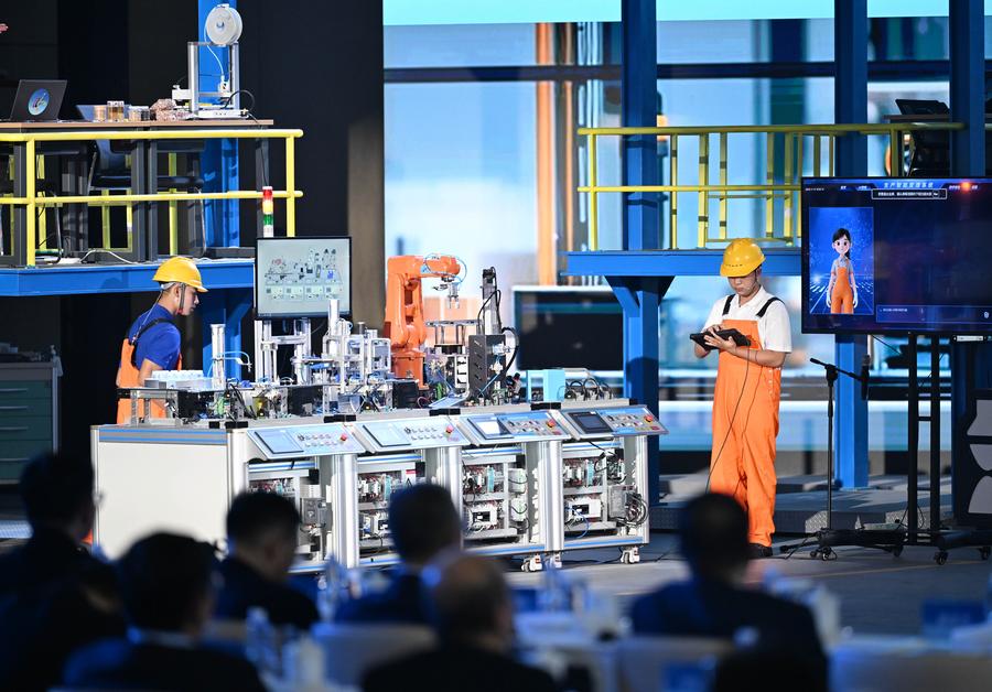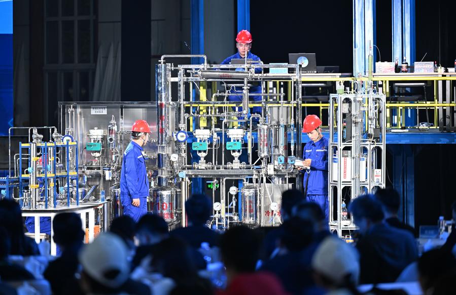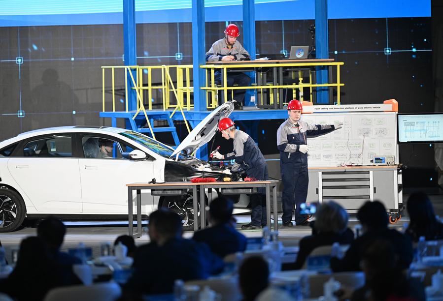 TIANJIN, Nov. 15 (Xinhua) -- Six teams participated in the final of the World Vocational College Skills Competition 2025 in north China's Tianjin on Friday, with the one from Jinhua University of Vocational Technology garnering the championship.