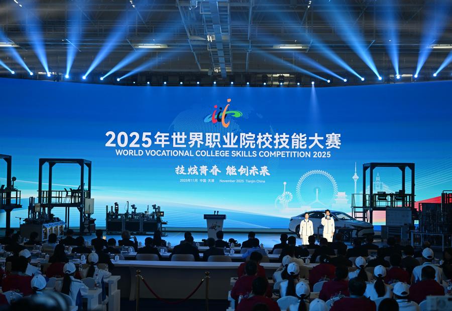 Contestants of Zaozhuang Vocational College compete during the World Vocational College Skills Competition 2025 in Tianjin, north China, Nov. 14, 2025. (Xinhua/Zhao Zishuo)Contestants of Jinhua University of Vocational Technology compete during the World Vocational College Skills Competition 2025 in Tianjin, north China, Nov. 14, 2025. (Xinhua/Zhao Zishuo)Contestants of East Kazakhstan Technical University compete during the World Vocational College Skills Competition 2025 in Tianjin, north China, Nov. 14, 2025. (Xinhua/Zhao Zishuo)Contestants of Zhejiang Polytechnic University of Mechanical and Electrical Engineering compete during the World Vocational College Skills Competition 2025 in Tianjin, north China, Nov. 14, 2025. (Xinhua/Zhao Zishuo)Contestants of Cambodia-China University of Technology and Science compete during the World Vocational College Skills Competition 2025 in Tianjin, north China, Nov. 14, 2025. (Xinhua/Zhao Zishuo)Contestants of Shaanxi Art Vocational College (Secondary Vocational Education Division) compete during the World Vocational College Skills Competition 2025 in Tianjin, north China, Nov. 14, 2025. (Xinhua/Zhao Zishuo)Guests comment on competitors' performance during the World Vocational College Skills Competition 2025 in Tianjin, north China, Nov. 14, 2025. (Xinhua/Zhao Zishuo)This photo taken on Nov. 14, 2025 shows a scene at the final of the World Vocational College Skills Competition 2025 in Tianjin, north China. (Xinhua/Zhao Zishuo)■