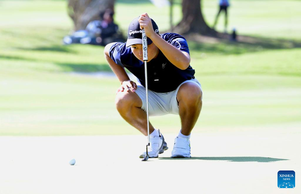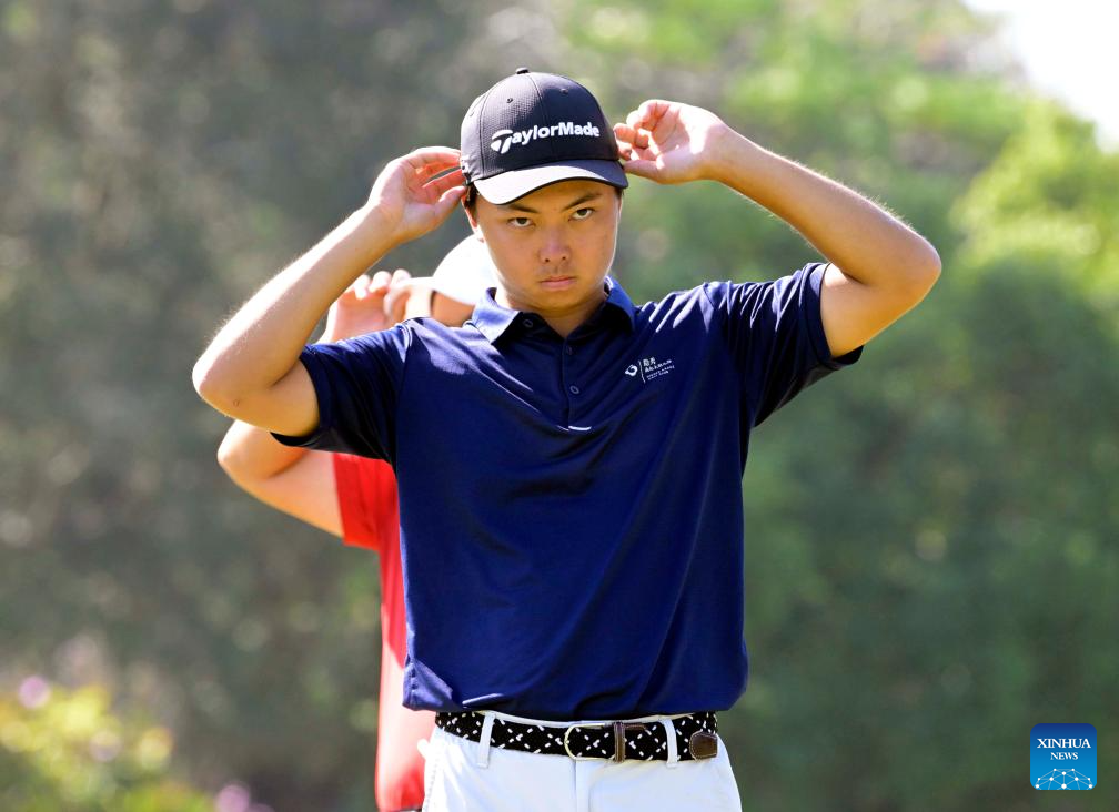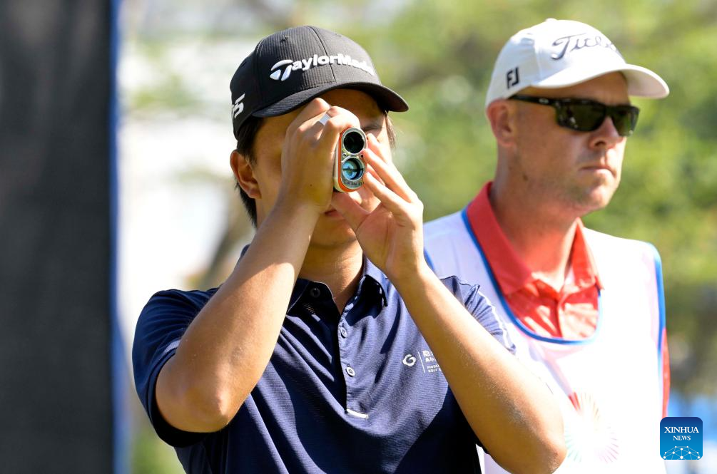 Kuang Yang of Zhejiang is seen during the men's individual final of golf at China's 15th National Games in Hong Kong, south China, Nov. 16, 2025. (Xinhua/Lo Ping Fai)