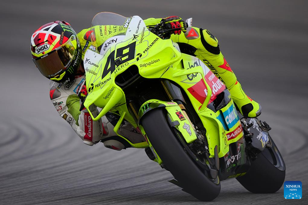 Pertamina Enduro VR46 Racing Team's Fabio Di Giannantonio of Italy competes during the sprint race of the MotoGP Valencia Grand Prix 2025 at Ricardo Tormo Circuit, Valencia, Spain, Nov. 15, 2025. (Str/Xinhua)