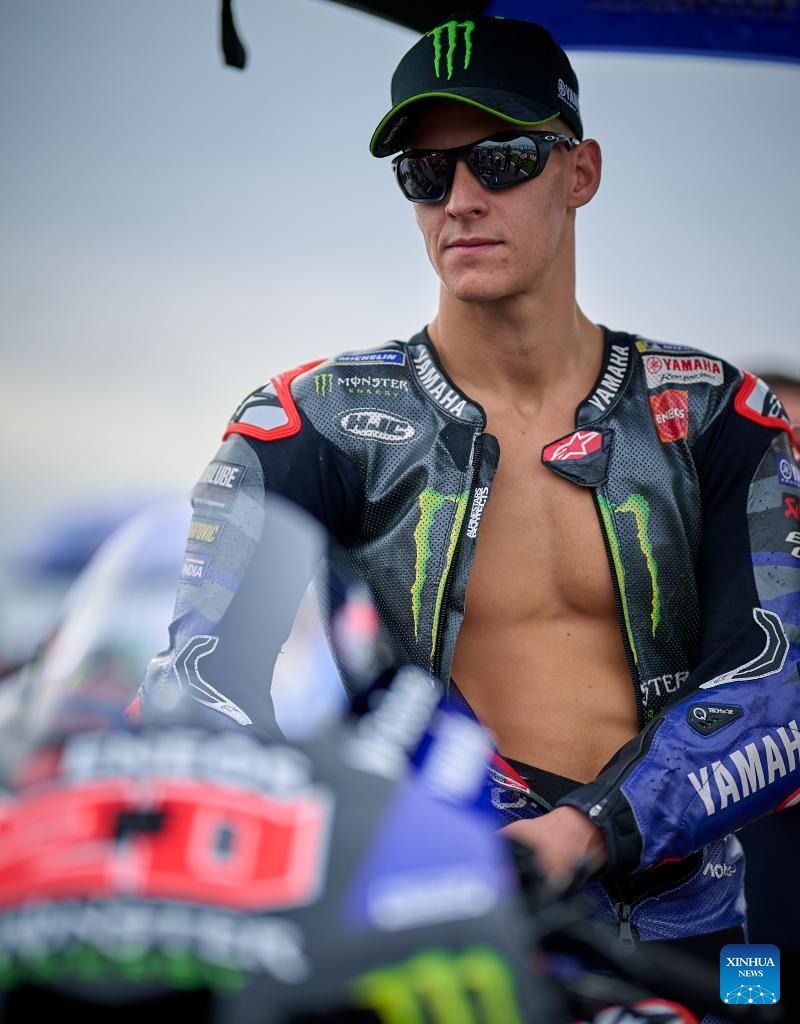 Monster Energy VR46 Racing Team's Fabio Quartararo of France reacts before the sprint race of the MotoGP Valencia Grand Prix 2025 at Ricardo Tormo Circuit, Valencia, Spain, Nov. 15, 2025. (Str/Xinhua)
