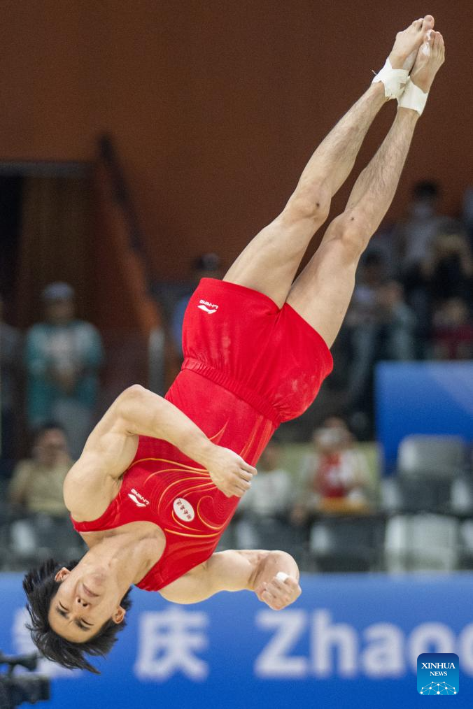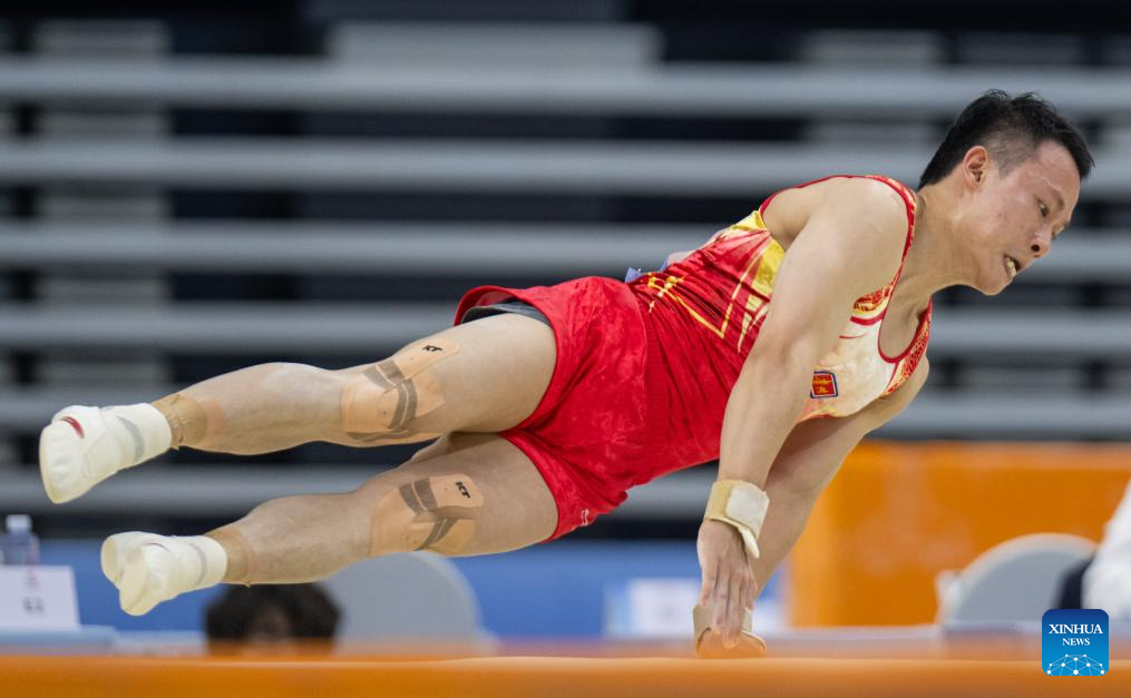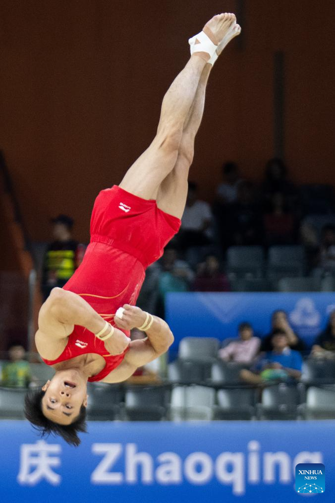 Chen Zhilong of Guizhou competes during the artistic gymnastics men's floor exercise final at China's 15th National Games in Zhaoqing, south China's Guangdong Province, Nov. 16, 2025. (Xinhua/Du Zixuan)