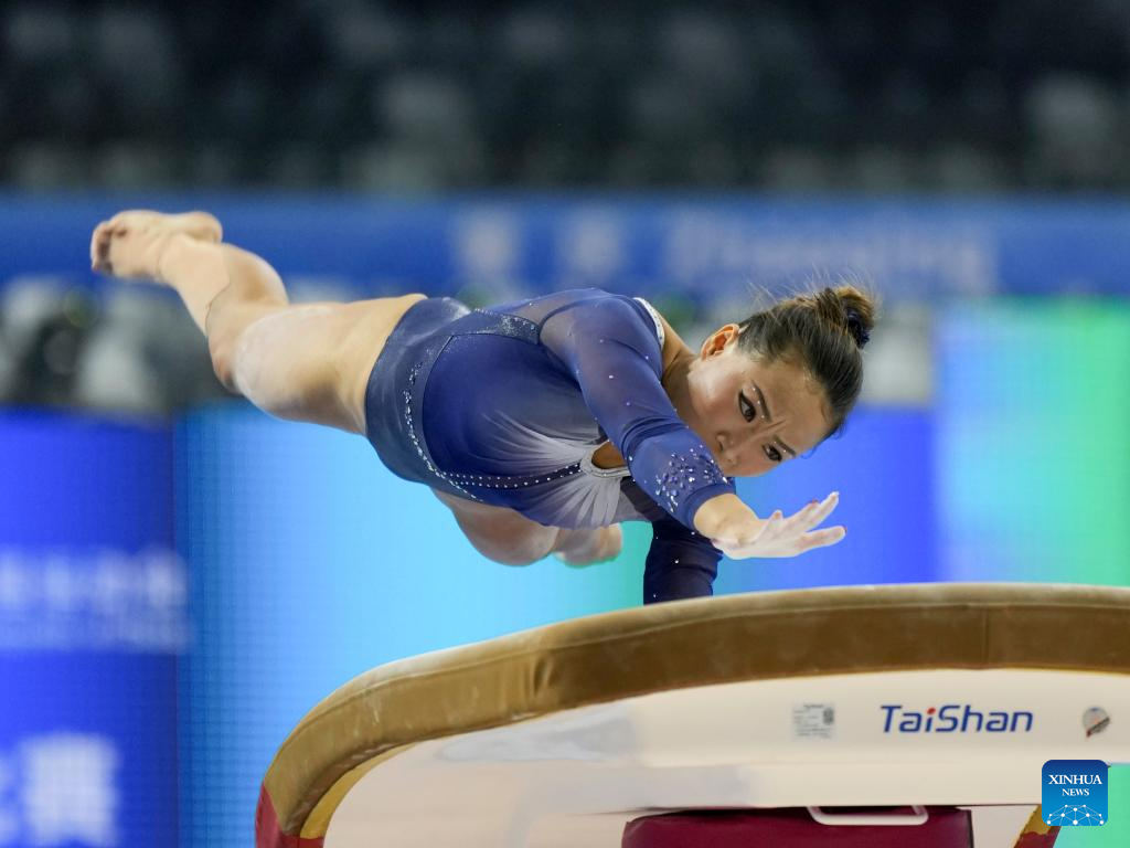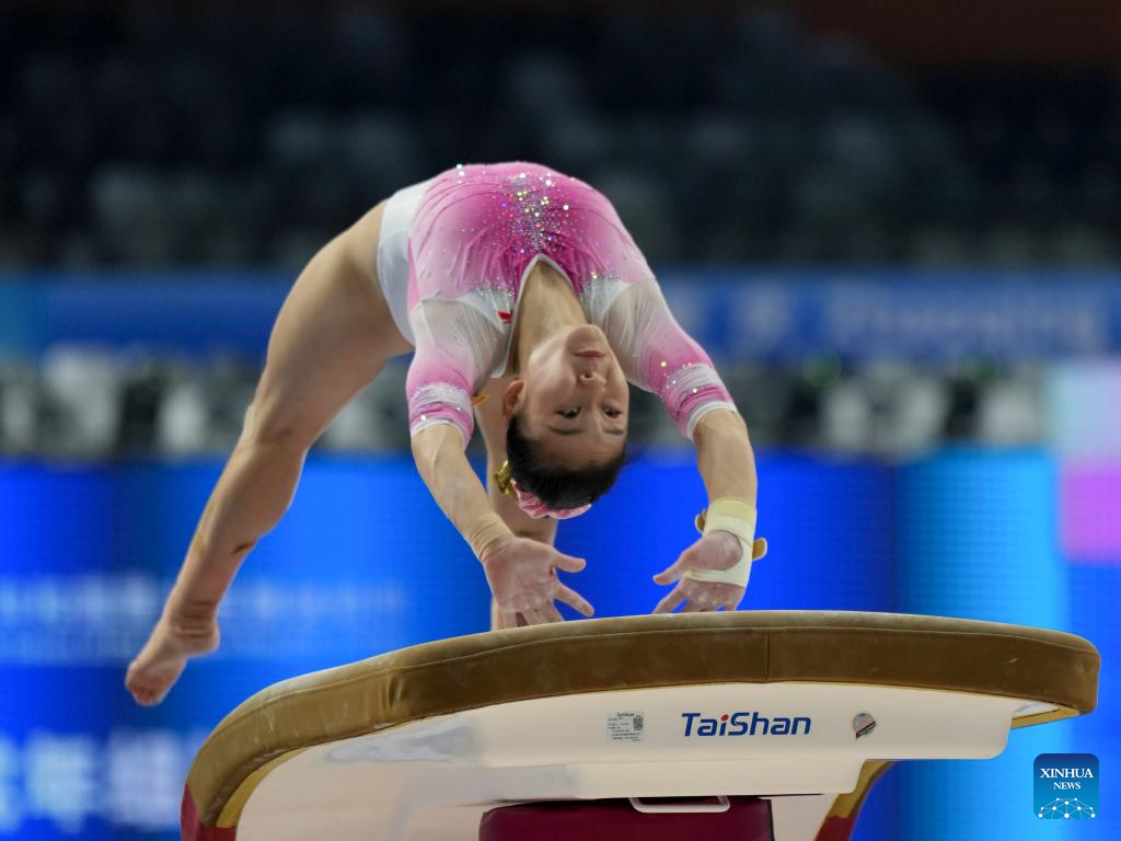 Du Siyu of Beijing competes during the artistic gymnastics women's vault final at China's 15th National Games in Zhaoqing, south China's Guangdong Province, Nov. 16, 2025. (Xinhua/Xu Bingjie)