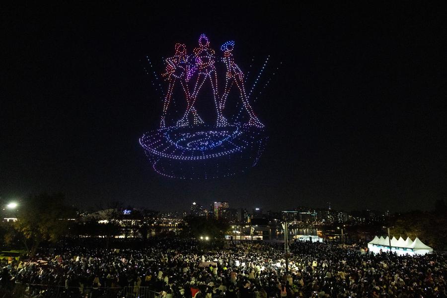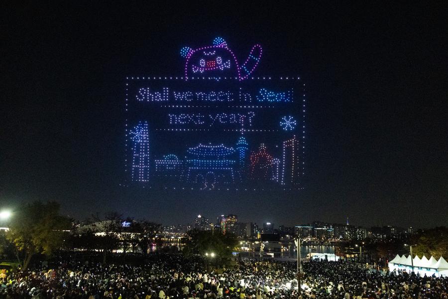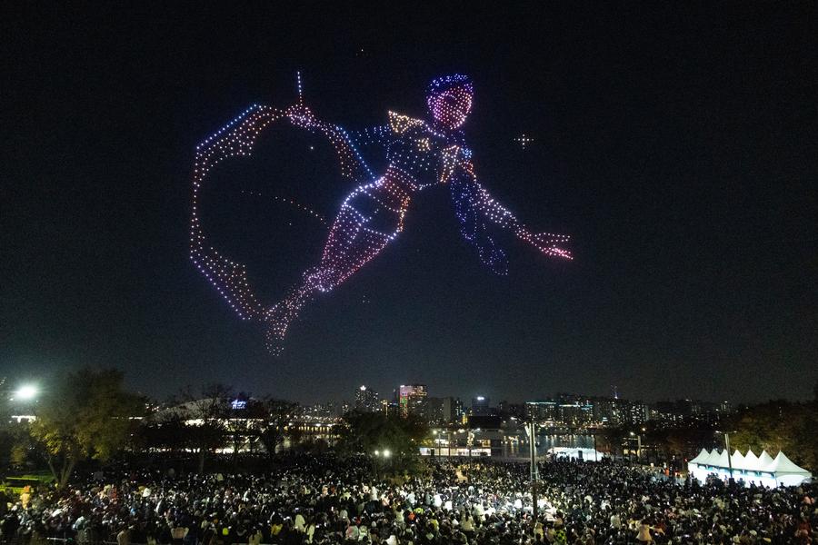 A drone light show is staged at Han River Park in Seoul, South Korea, on Nov. 15, 2025. (Photo by Jun Hyosang/Xinhua)People watch a drone light show at Han River Park in Seoul, South Korea, on Nov. 15, 2025. (Photo by Jun Hyosang/Xinhua)People watch a drone light show at Han River Park in Seoul, South Korea, on Nov. 15, 2025. (Photo by Jun Hyosang/Xinhua)People watch a drone light show at Han River Park in Seoul, South Korea, on Nov. 15, 2025. (Photo by Jun Hyosang/Xinhua)A drone light show is staged at Han River Park in Seoul, South Korea, on Nov. 15, 2025. (Photo by Jun Hyosang/Xinhua)■