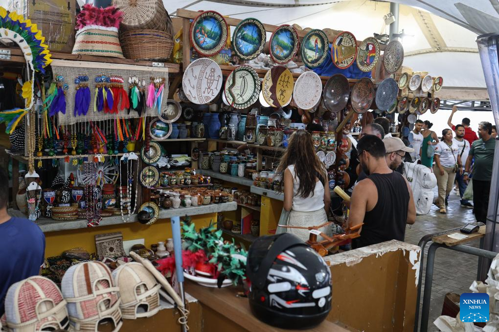 Visitors shop for souvenirs at the Ver-o-Peso Market in Belem, Brazil, Nov. 16, 2025. (Photo by Claudia Martini/Xinhua)