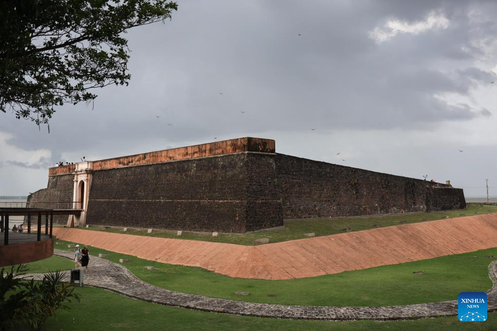 People visit the Forte do Presepio in Belem, Brazil, Nov. 16, 2025. (Photo by Claudia Martini/Xinhua)