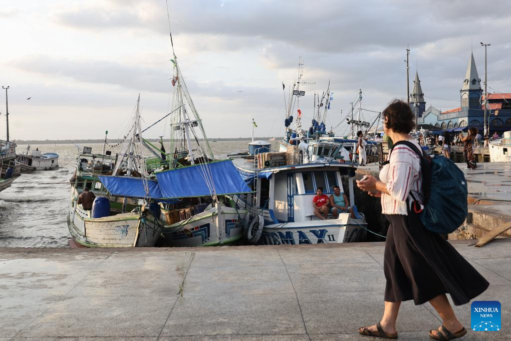 Fishing boats are seen moored at the port in Belem, Brazil, Nov. 16, 2025. (Photo by Claudia Martini/Xinhua)