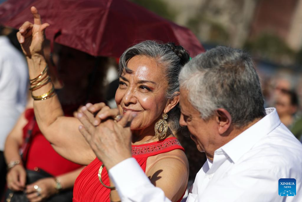 People attend a public danzon dance event at Zocalo Square in Mexico City, capital of Mexico, on Nov. 16, 2025. (Xinhua/Francisco Canedo)