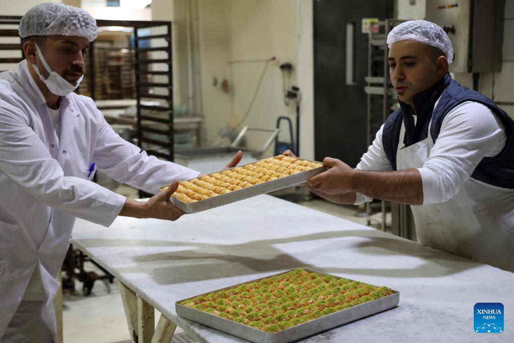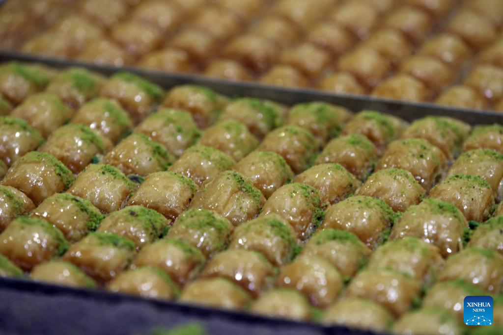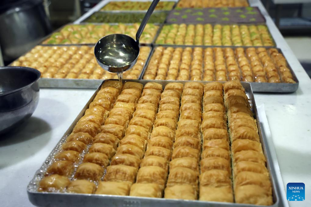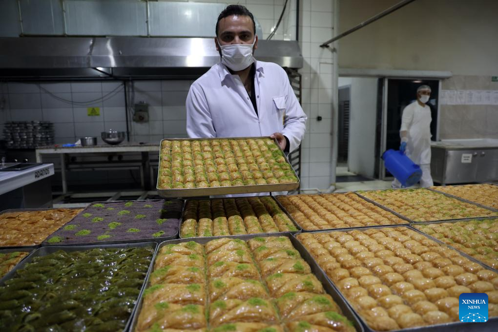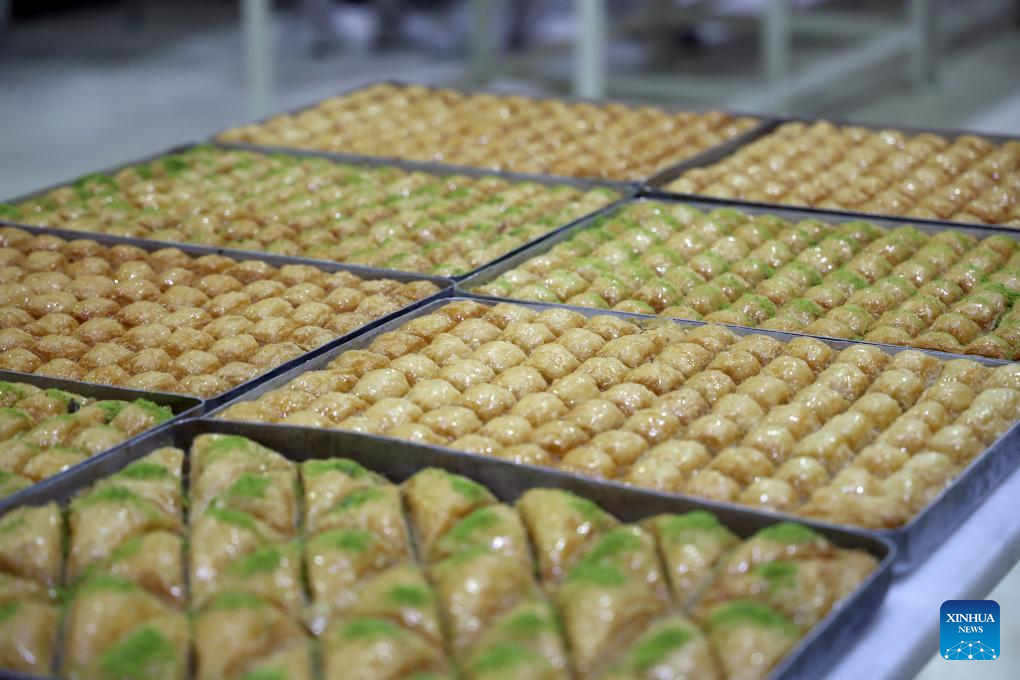 A baker makes baklavas, a traditional Turkish dessert, in Ankara, Türkiye, Nov. 14, 2025. Baklava is a sweet Turkish pastry with layers of filled dough, butter and the smell of sweet syrup. (Mustafa Kaya/Handout via Xinhua)