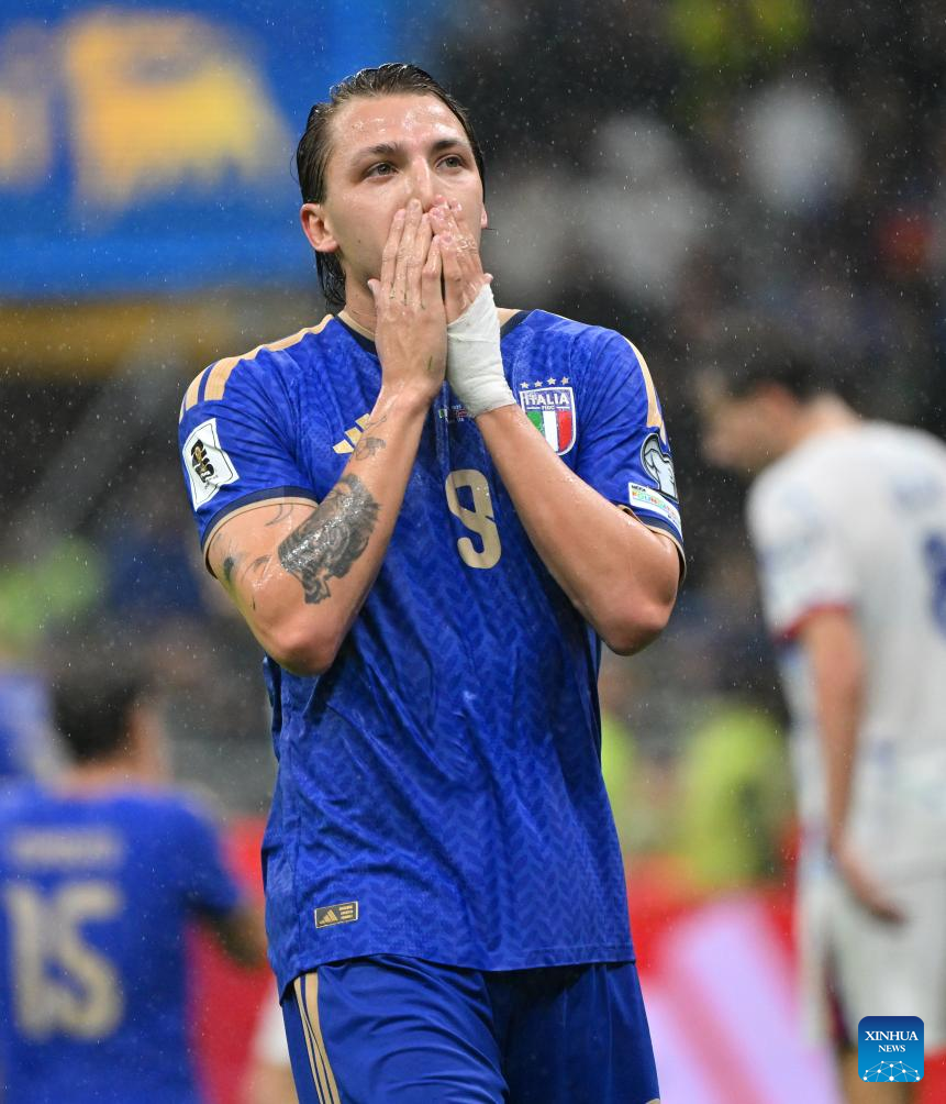 Mateo Retegui of Italy reacts during the 2026 World Cup European Qualifiers match between Italy and Norway in Milan, Italy, Nov. 16, 2025. (Photo by Alberto Lingria/Xinhua)