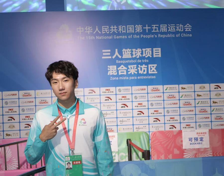The 20-year-old sophomore Yao served as a volunteer for 3x3 basketball in Macao, providing services for participating teams while enjoying high-level basketball competitions during his off time.