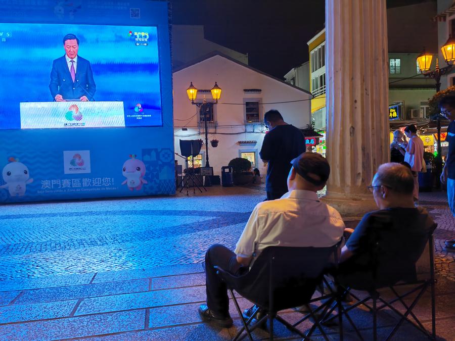 "I follow the news of the Games every day. Our country trusts us to host the event, which makes us feel a sense of belonging, then a sense of happiness," Macao resident Amoy said while watching the opening ceremony at Rua do Cunha.