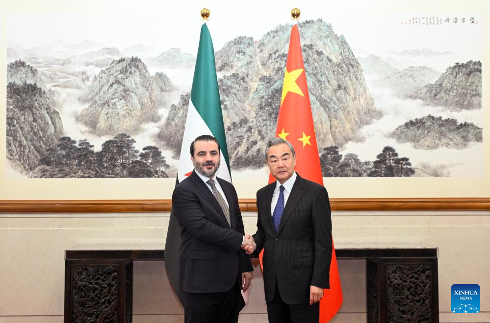 Chinese Foreign Minister Wang Yi, also a member of the Political Bureau of the Communist Party of China Central Committee, holds talks with Syrian Minister of Foreign Affairs Asaad Hassan al-Shibani in Beijing, capital of China, Nov. 17, 2025. (Xinhua/Jin Liangkuai)
