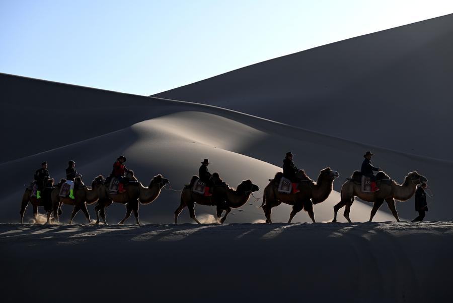 China's first Type 076 amphibious assault ship, the Sichuan, is underway on Nov. 15, 2025. The Sichuan returned to the shipyard in Shanghai at around 5 p.m. on Nov. 16 after completing its maiden sea trial. The three-day mission tested the indigenously developed ship's propulsion and electrical systems, as well as other equipment, achieving the expected results. The Sichuan will undergo follow-up tests in accordance with established plans. (Photo by Zhang Liang/Xinhua)This aerial drone photo taken on Nov. 16, 2025 shows a China-Europe freight train departing from the transshipment yard of Tongjiang North Railway Station in Tongjiang City, northeast China's Heilongjiang Province. As an important part of the eastern corridor of the China-Europe freight train service, Tongjiang Railway Port has handled a total of 273 China-Europe freight train trips since it was launched in 2022, with over 14 million tonnes of imported and exported goods, according to data from China Railway Harbin Group Co., Ltd. (Photo by Wu Yunan/Xinhua)A live streamer works at the 17th Cross-Strait Tea Expo in Wuyishan, southeast China's Fujian Province, Nov. 16, 2025. The 17th Cross-Strait Tea Expo opened on Sunday in Wuyishan City of Fujian Province. Featuring the theme of integrated development of tea culture, industry, and science and technology, this year's expo has drawn over 850 enterprises, including 173 from Taiwan. (Photo by Huang Jiemin/Xinhua)Tourists visit the Mingsha Mountain and Crescent Spring Scenic Area in Dunhuang City, northwest China's Gansu Province, on Nov. 15, 2025. (Photo by Zhang Xiaoliang/Xinhua)Gold medalist Fan Zhendong (L) of Shanghai shakes hands with bronze medalist Wang Chuqin of Beijing during the awarding ceremony for the men's singles of table tennis at China's 15th National Games in Macao, south China, Nov. 16, 2025. (Xinhua/Liang Xu)Lin Sheng of Fujian celebrates after defeating Wu Caiyao of Guangdong during the women's epee individual final of fencing at China's 15th National Games in Hong Kong, south China, Nov. 15, 2025. (Xinhua/Chen Duo)An elderly man weaves cloth using traditional hand-weaving techniques in Tripoli, Libya, Nov. 13, 2025. (Photo by Hazem Turkia/Xinhua)People visit the Winter Village at Bryant Park in New York, the United States, on Nov. 15, 2025. Featuring a holiday market, a skating rink and a food hall, the Winter Village is a popular winter holiday destination at Bryant Park. (Xinhua/Zhang Fengguo)■