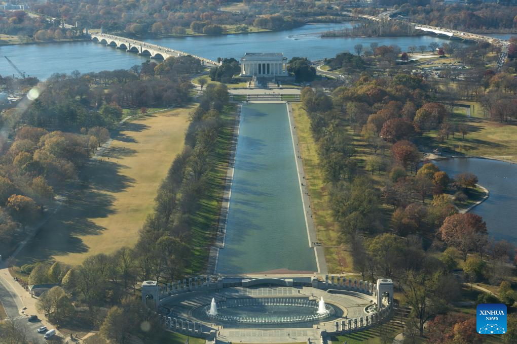 The photo taken from atop the Washington Monument on Nov. 17, 2025 shows the National Mall and Lincoln Memorial in Washington, D.C., the United States. (Xinhua/Hu Yousong)