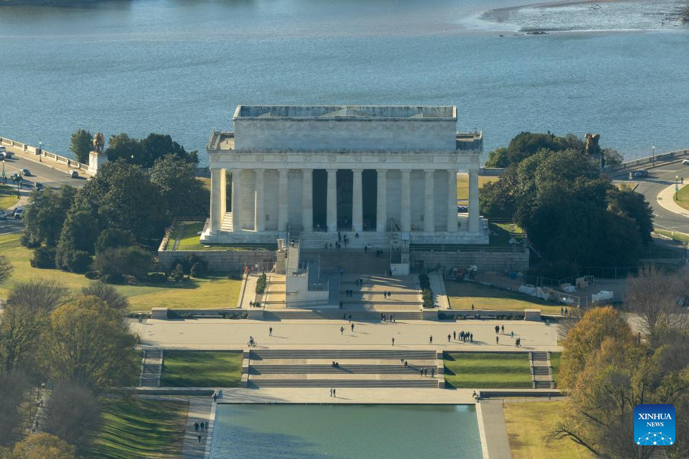The photo taken from atop the Washington Monument on Nov. 17, 2025 shows the Lincoln Memorial in Washington, D.C., the United States. (Xinhua/Hu Yousong)