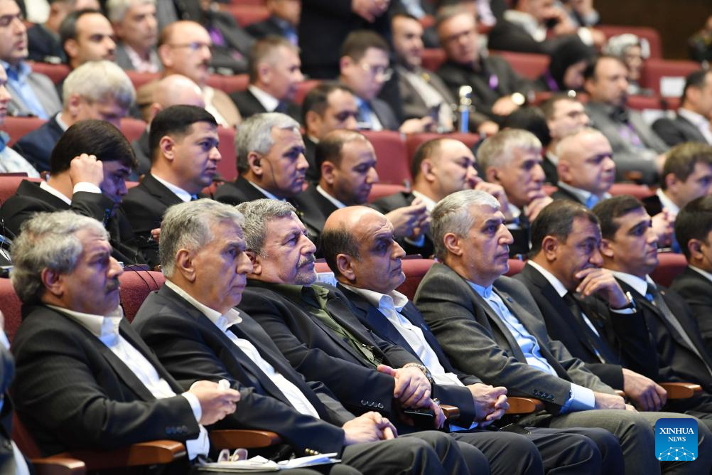 People attend the First Caspian Governors' Forum in Rasht, Iran, Nov. 19, 2025. Representatives from Iran, Russia, Azerbaijan, Turkmenistan and Kazakhstan took part in the event aiming to strengthen regional cooperation among the Caspian Sea littoral states. (Xinhua/Shadati)