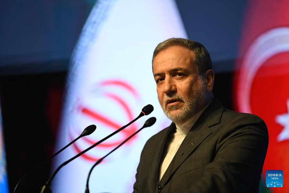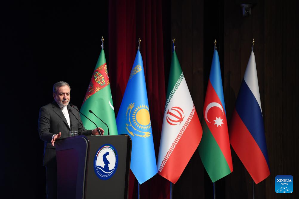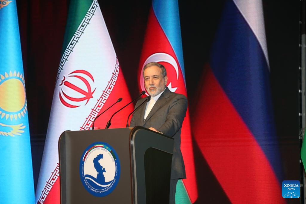 Iranian Foreign Minister Seyed Abbas Araghchi speaks during a press conference of the First Caspian Governors' Forum in the northern city of Rasht, Iran, Nov. 18, 2025. Iran on Tuesday opened the First Caspian Governors' Forum in Rasht, aiming to strengthen regional cooperation among the Caspian Sea littoral states. (Xinhua/Shadati)