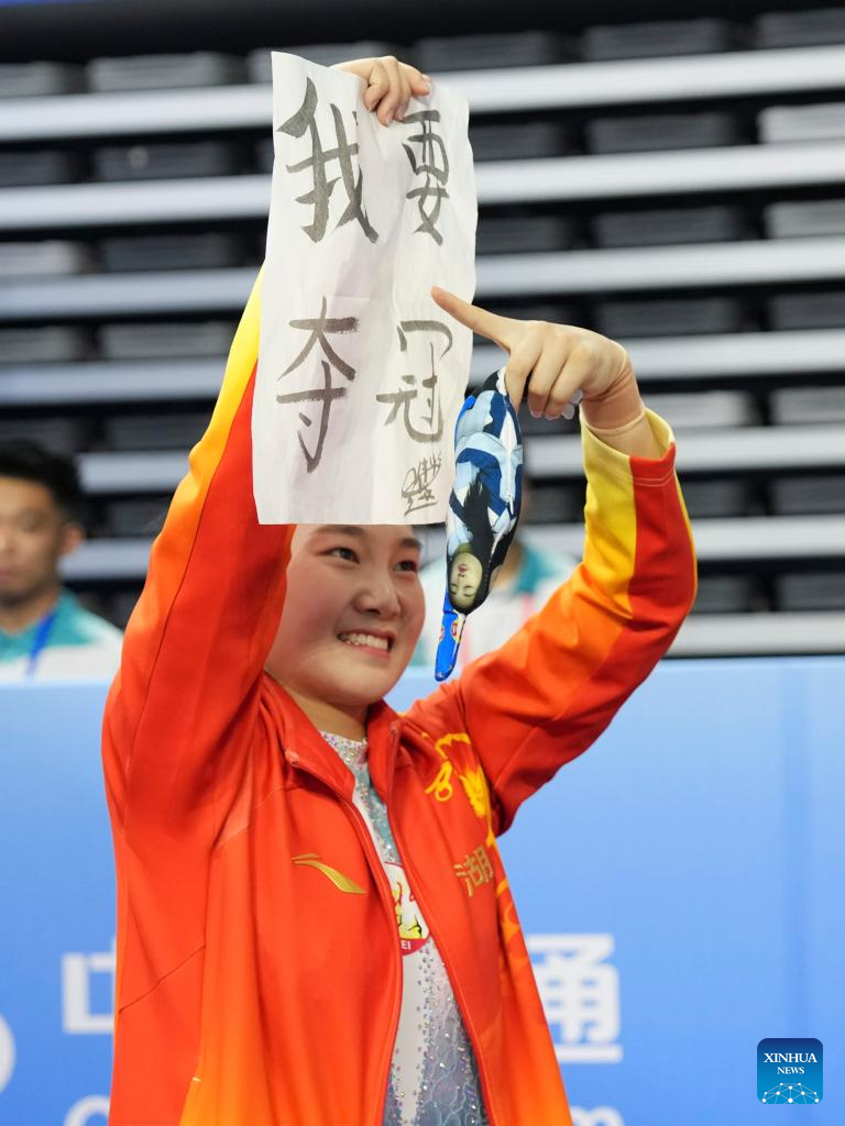 Zhao Jiayi of Hubei is seen after the artistic gymnastics women's floor exercise final at China's 15th National Games in Zhaoqing, south China's Guangdong Province, Nov. 17, 2025. (Xinhua/Xu Bingjie)