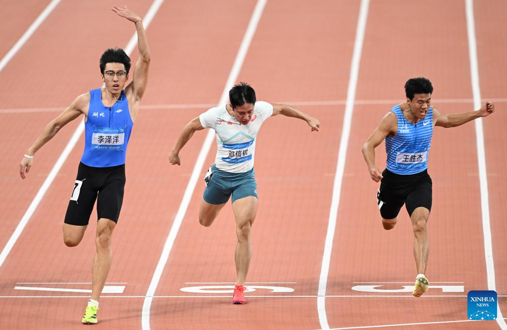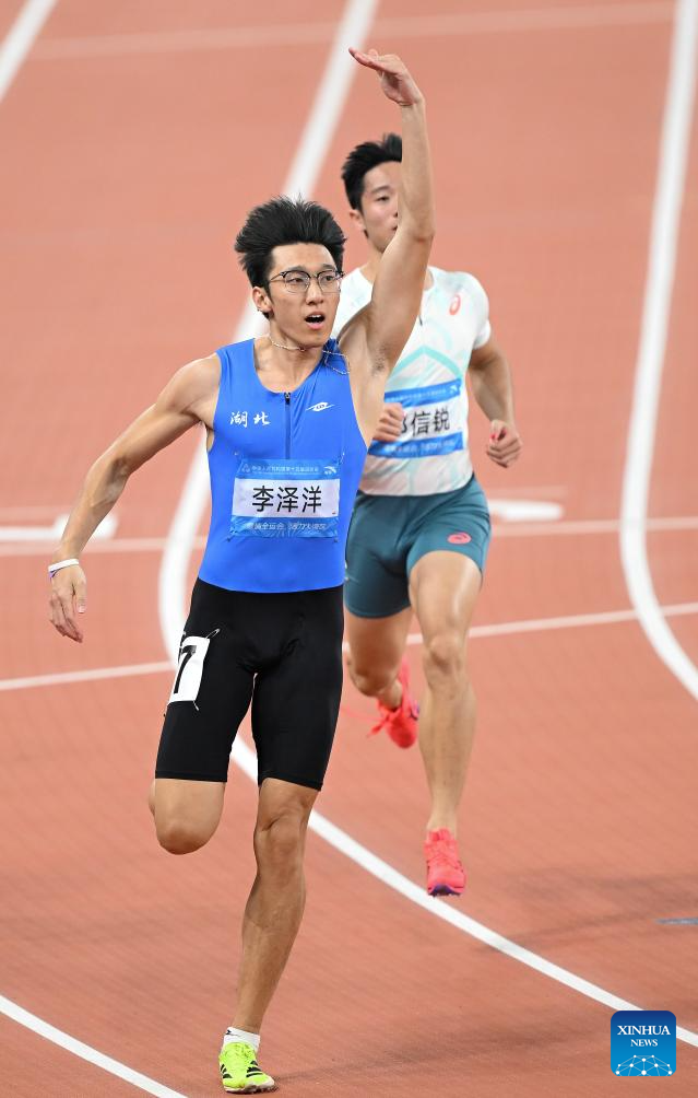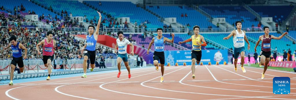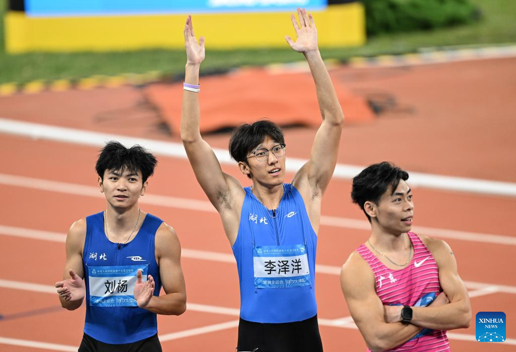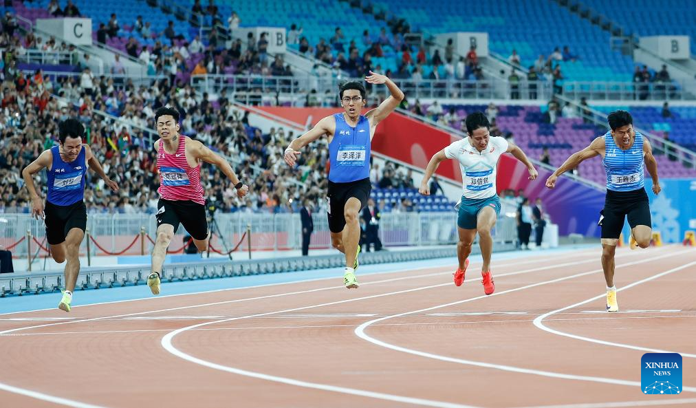 GUANGZHOU, Nov. 17 (Xinhua) -- Sprinters Li Zeyang of Hubei and Chen Yujie of Zhejiang stole the spotlight at China's 15th National Games on Monday, as Li clocked 10.11 seconds to win the men's 100 meters and 16-year-old Chen became the youngest women's champion in the event's history.