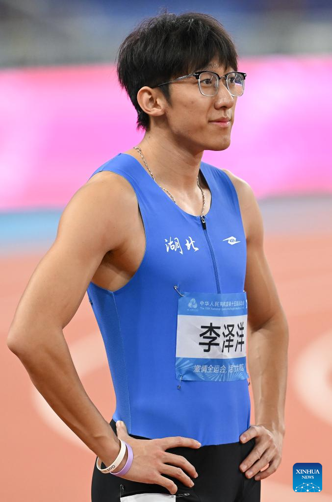 Li Zeyang of Hubei competes during the men's 100m final of athletics at China's 15th National Games in Guangzhou, south China's Guangdong Province, Nov. 17, 2025. (Xinhua/Xiao Yijiu)