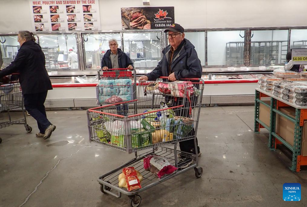 Customers shop for food at a Costco store in Vancouver, British Columbia, Canada, Nov. 17, 2025. Canada's Consumer Price Index (CPI) rose 2.2 percent on a year-over-year basis in October, down from a 2.4 percent increase in September, Statistics Canada said Monday. (Photo by Liang Sen/Xinhua)