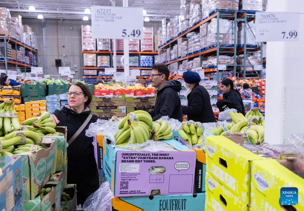 Customers shop for fruit at a Costco warehouse store in Toronto, Canada, Nov. 17, 2025. Canada's Consumer Price Index (CPI) rose 2.2 percent on a year-over-year basis in October, down from a 2.4 percent increase in September, Statistics Canada said Monday. (Photo by Zou Zheng/Xinhua)