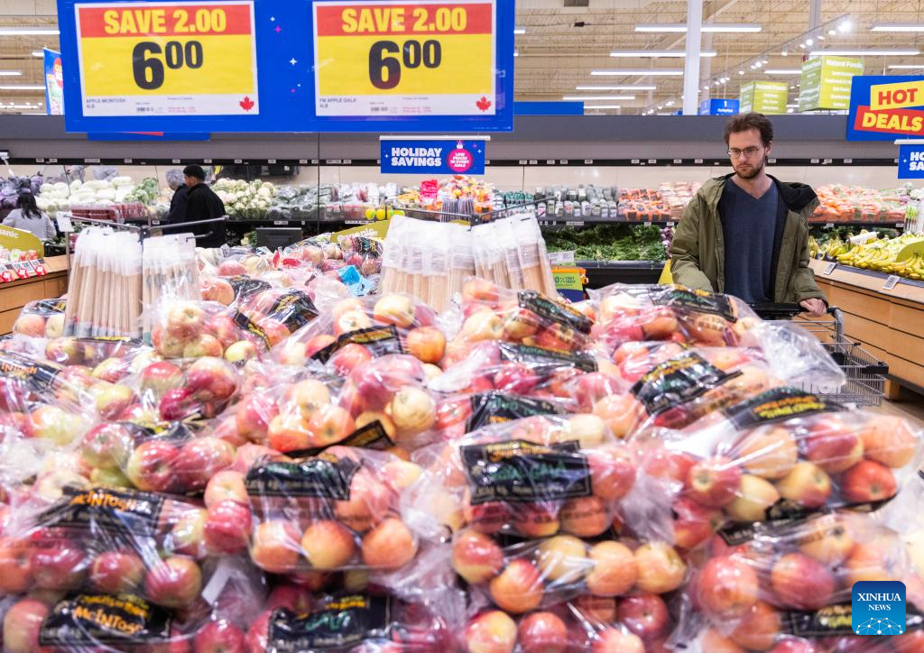 A customer shops for fruit at a supermarket in Toronto, Canada, Nov. 17, 2025. Canada's Consumer Price Index (CPI) rose 2.2 percent on a year-over-year basis in October, down from a 2.4 percent increase in September, Statistics Canada said Monday. (Photo by Zou Zheng/Xinhua)