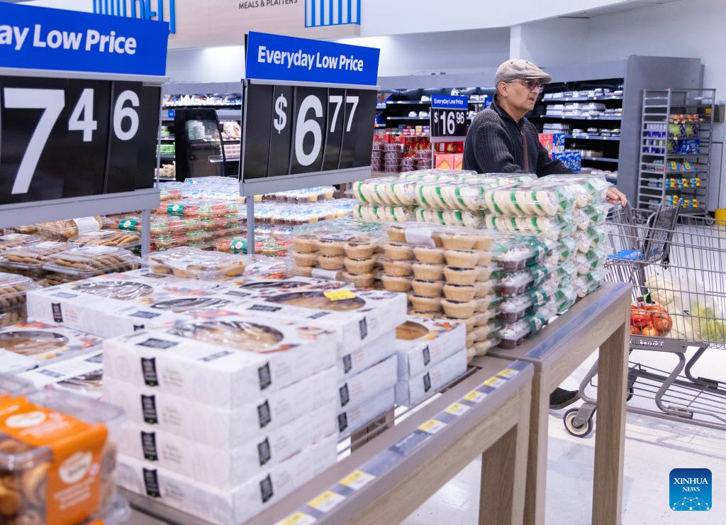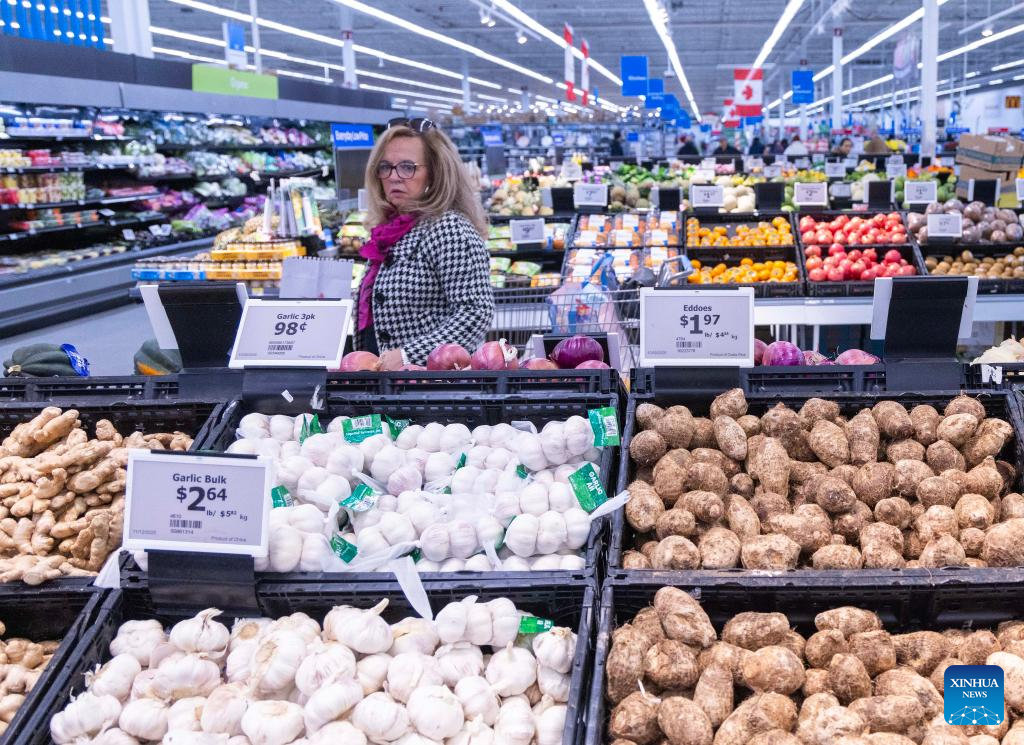 A customer shops for groceries at a Walmart store in Toronto, Canada, Nov. 17, 2025. Canada's Consumer Price Index (CPI) rose 2.2 percent on a year-over-year basis in October, down from a 2.4 percent increase in September, Statistics Canada said Monday. (Photo by Zou Zheng/Xinhua)