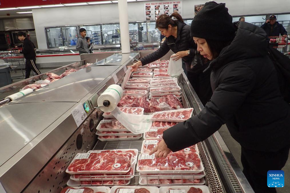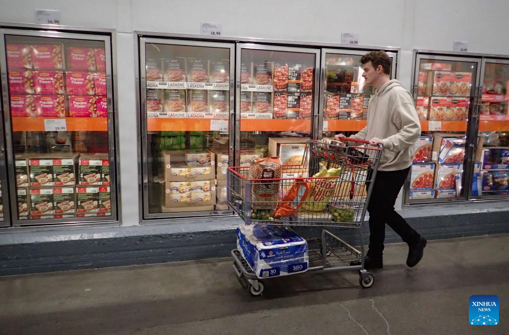 A customer shops for food at a Costco store in Vancouver, British Columbia, Canada, Nov. 17, 2025. Canada's Consumer Price Index (CPI) rose 2.2 percent on a year-over-year basis in October, down from a 2.4 percent increase in September, Statistics Canada said Monday. (Photo by Liang Sen/Xinhua)