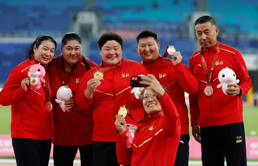 GUANGZHOU, Nov. 19 (Xinhua) -- After the shot landed with a final thud, Gong Lijiao knew her long goodbye was complete. She had just finished her last attempt at her fifth National Games, securing a historic fifth consecutive women's shot put title on Sunday.