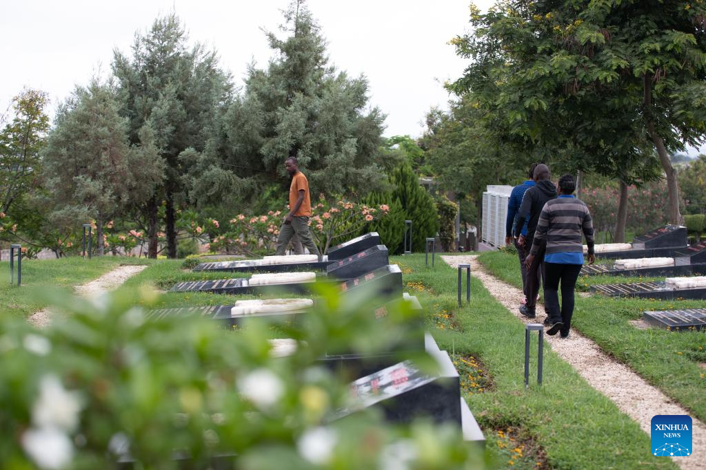 Locals pay tribute to Chinese aid workers, who died in building the Tanzania-Zambia Railway (TAZARA), at the TAZARA Memorial Park in Chongwe District, east of Lusaka, Zambia, Nov. 12, 2025. (Xinhua/Peng Lijun)