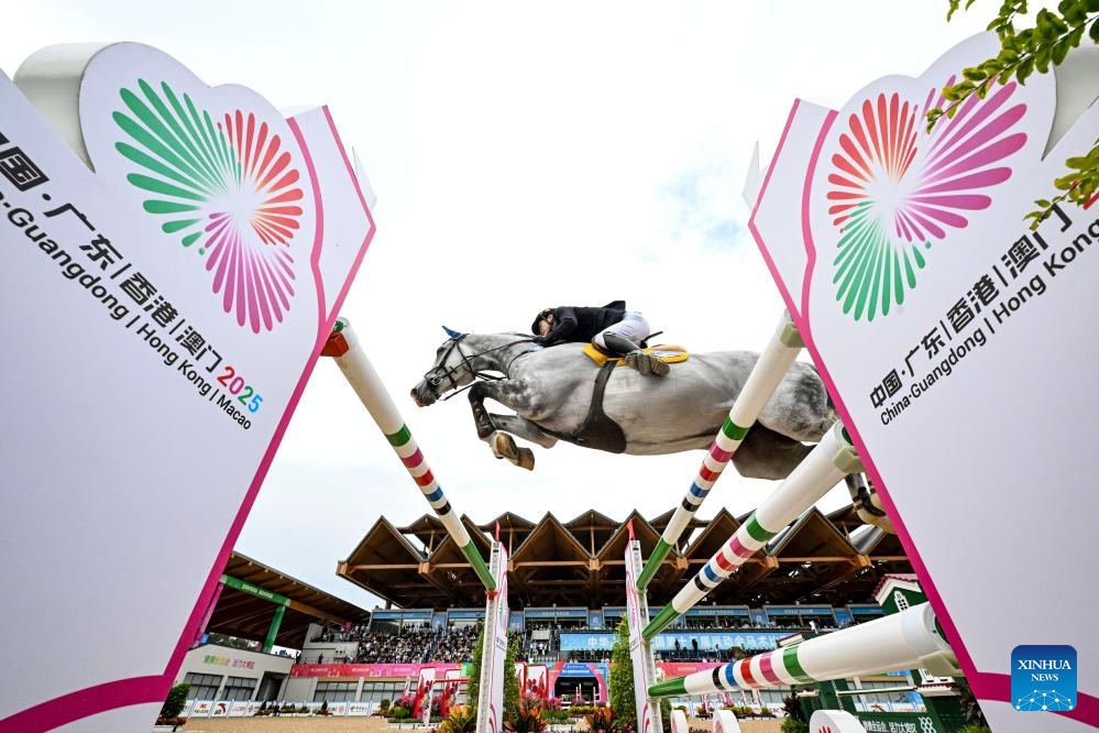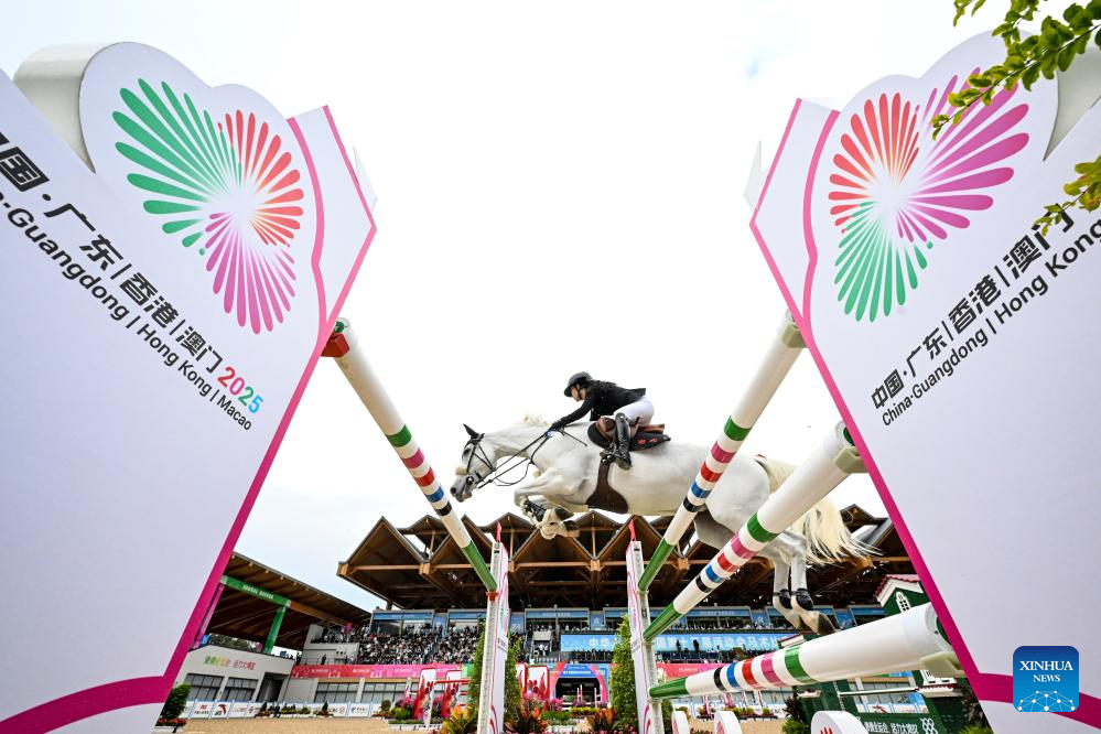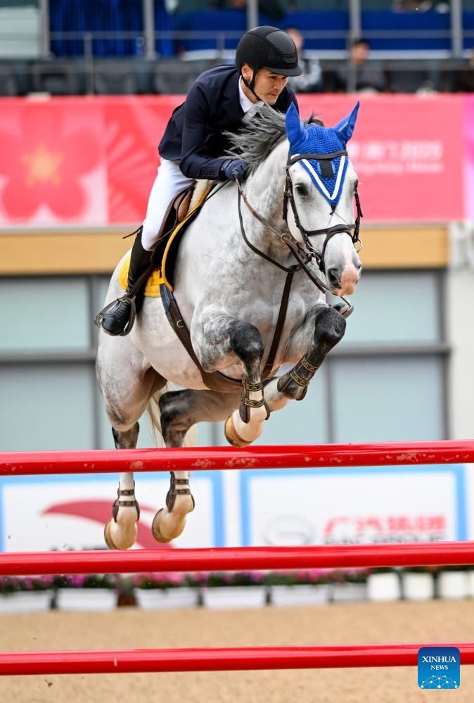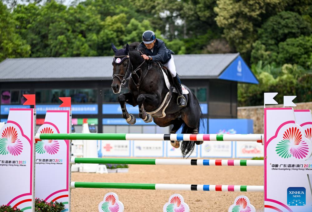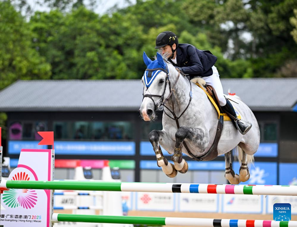Muladeli of Guangxi competes during the jumping individual final of equestrian at China's 15th National Games in Shenzhen, south China's Guangdong Province, Nov. 19, 2025. (Xinhua/Feng Kaihua)