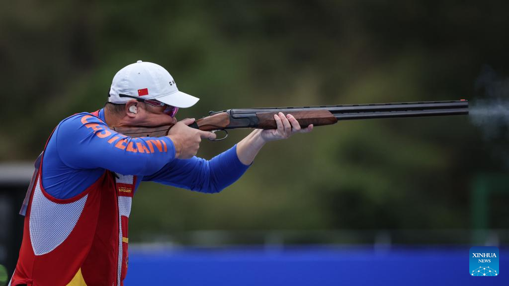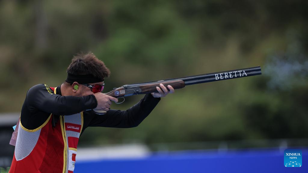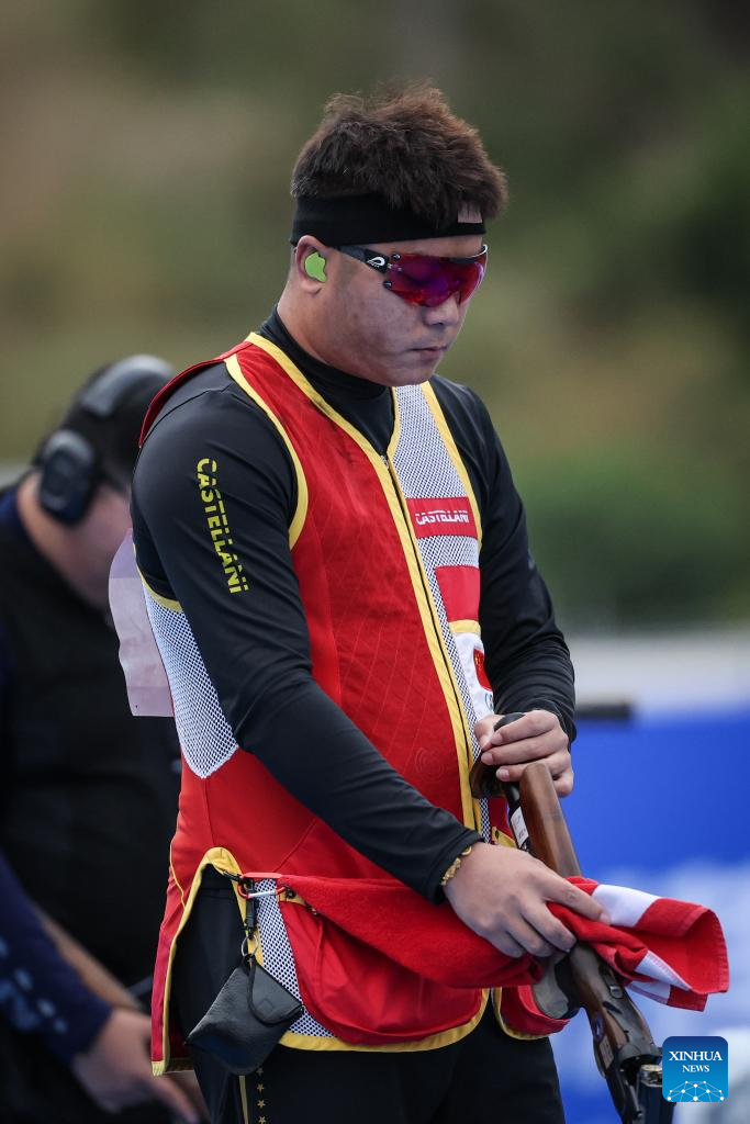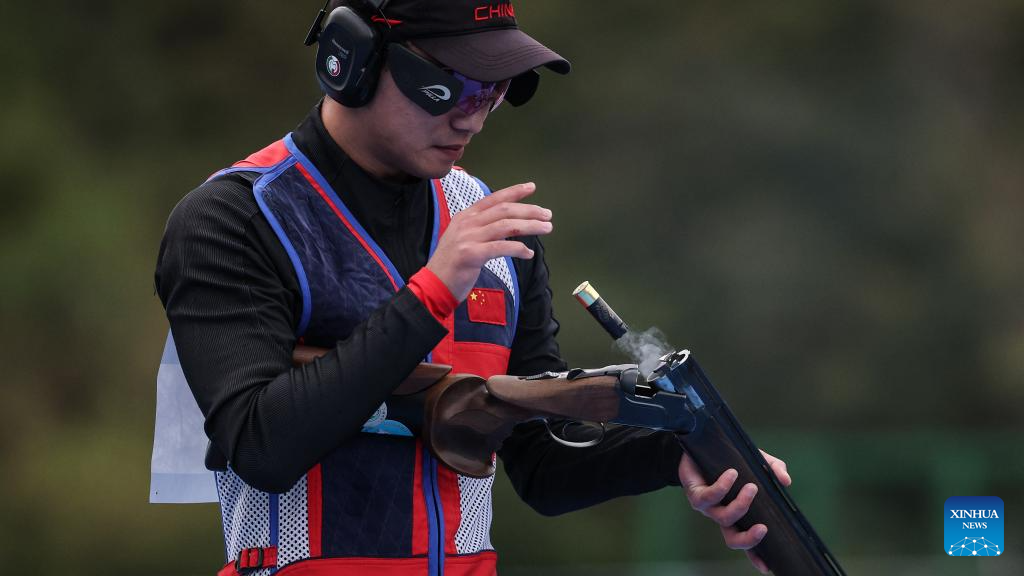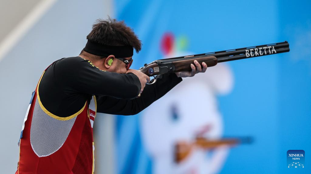 Li Cheng of Shanghai competes during the trap men's final of shooting at China's 15th National Games in Guangzhou, south China's Guangdong Province, Nov. 19, 2025. (Xinhua/Pan Yulong)